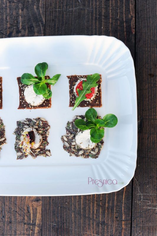 Tale sirček po teksturi in tudi okusu res spominja na skuto. Odet v različne posipe je zelo dekorativen, predvsem pa nebeško dober. Rezinico položimo na kreker ali kruhek in bogato obložimo s pisano zelenjavo in kalčki in uživamo v okusih, ki se prelivajo v naših ustih.